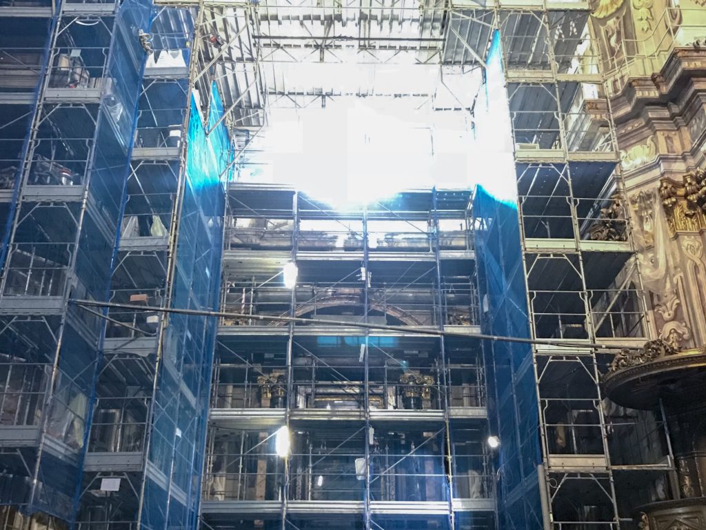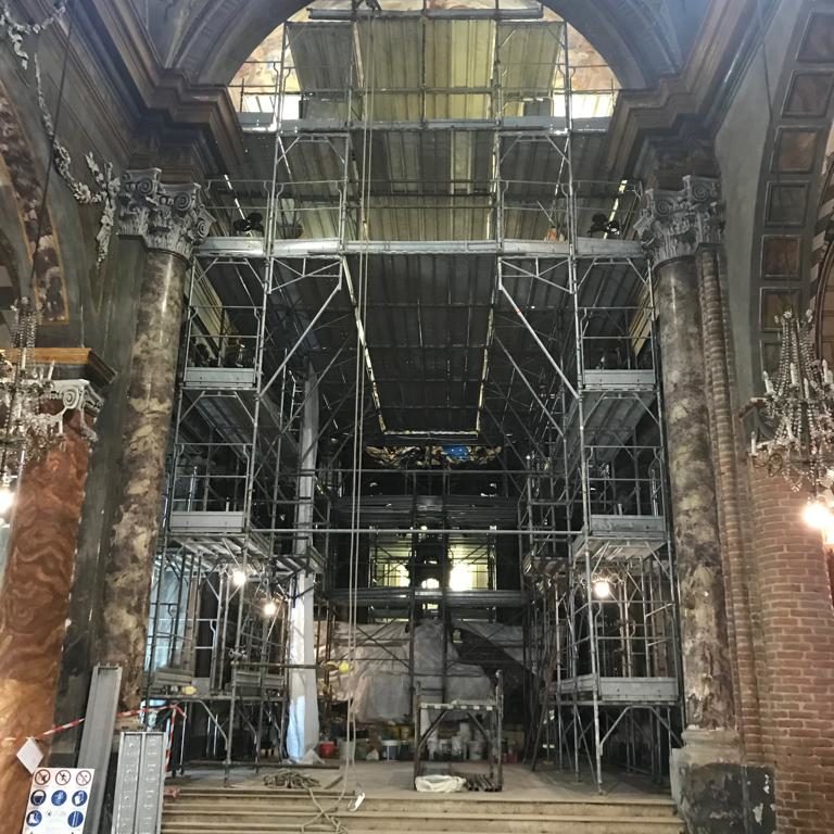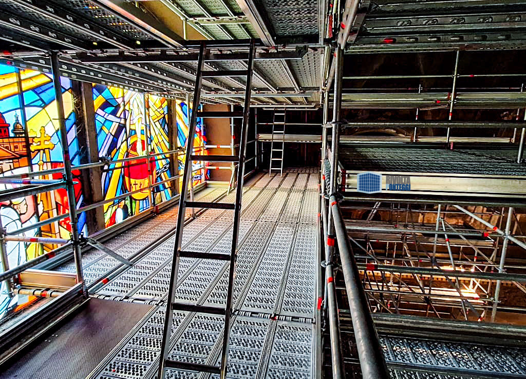 Lavorare su un edificio religioso significa rispettare la sua storia, le sue forme e il suo valore culturale. Le nostre strutture provvisorie offrono la sicurezza necessaria ai restauratori e allo stesso tempo tutelano l’integrità della chiesa.