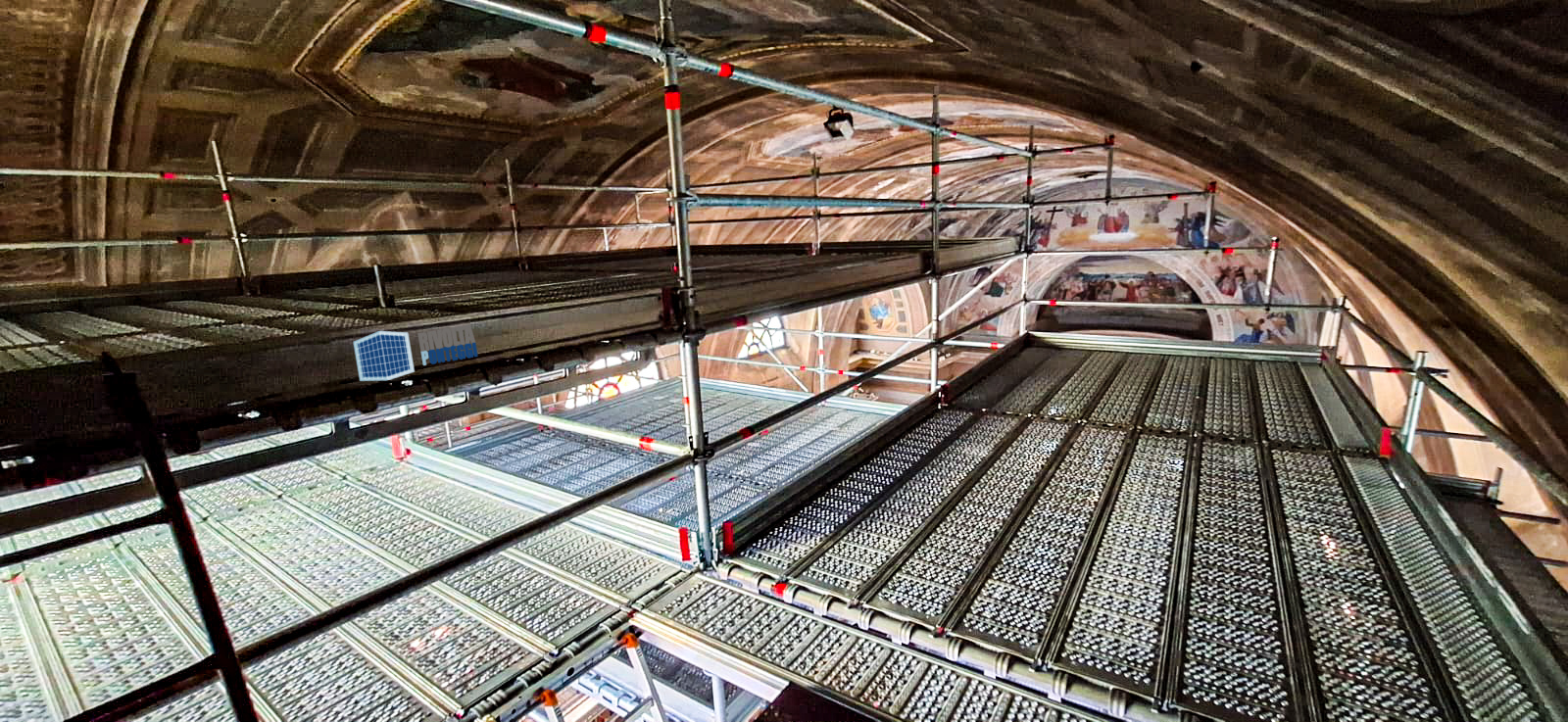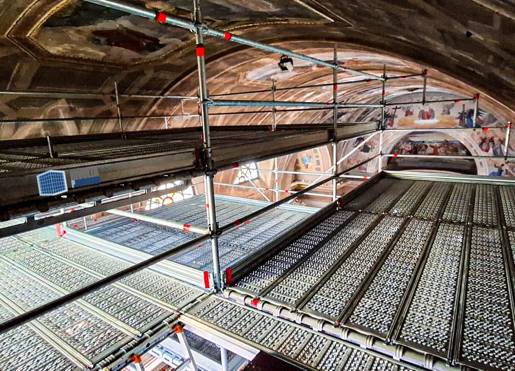 - Custom-shaped scaffolding designed for delicate restoration works